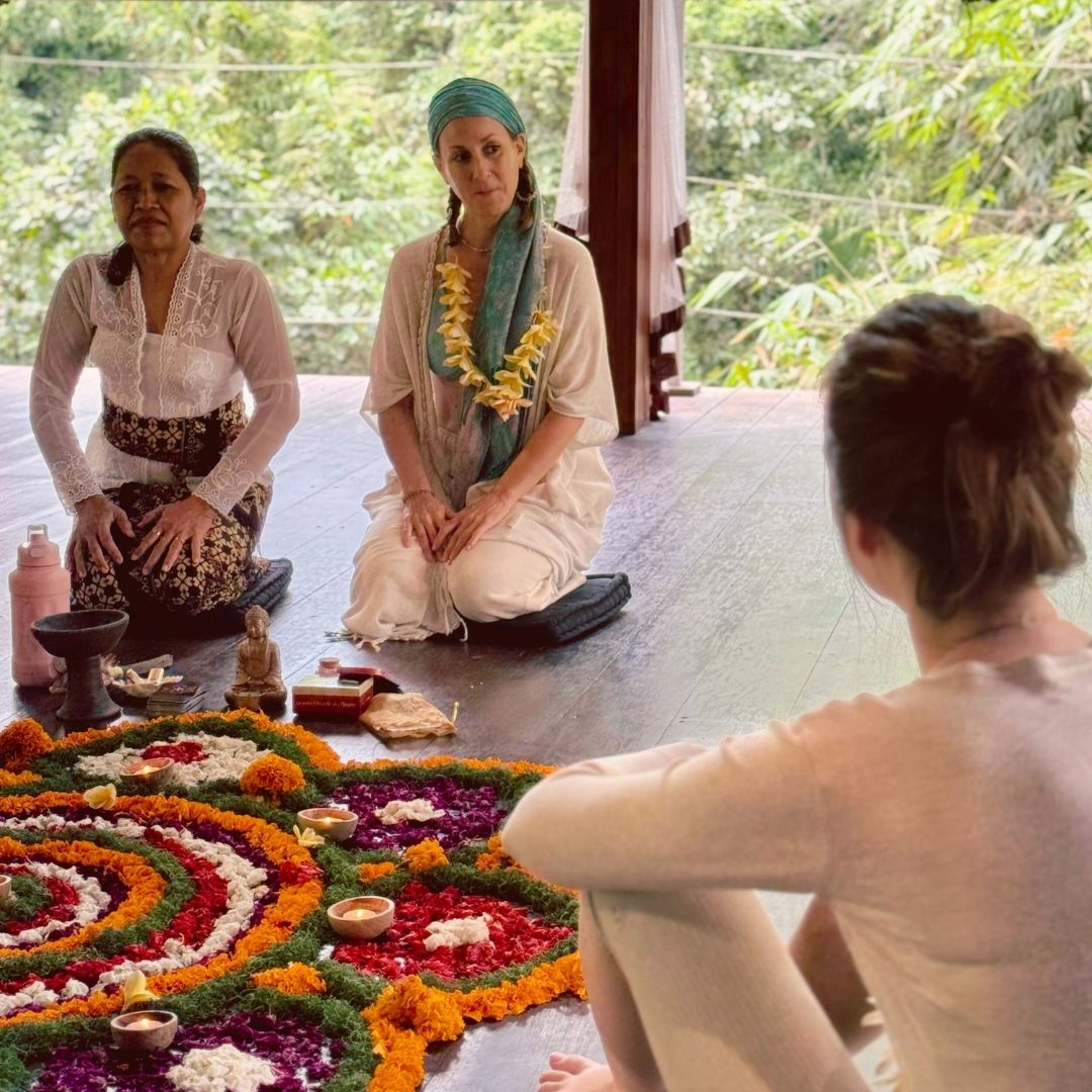 In a supportive circle, we relearn together how to honor our sacred essence in all its forms: healing practices, ancient Balinese rituals, free expression of the body, creativity, and reconnection to Self. Throughout this journey, deep connections are formed…
